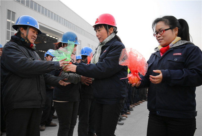 在大方重機(jī)的生產(chǎn)一線,副總經(jīng)理李曉寧代表董事長(zhǎng)曹相學(xué)、總經(jīng)理謝保華將每一個(gè)系著漂亮蝴蝶結(jié)的圣誕果親手交到了每一位一線員工手中。她說(shuō):“感謝大家在即將過(guò)去的一年中辛勤的工作,我代表公司向各位表示感謝!祝大家圣誕節(jié)快樂(lè)!來(lái)年大方重機(jī)風(fēng)調(diào)雨順、平平安安!