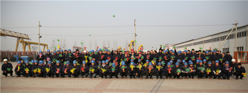 班組成員在生產(chǎn)樓前的廣場(chǎng)上合影