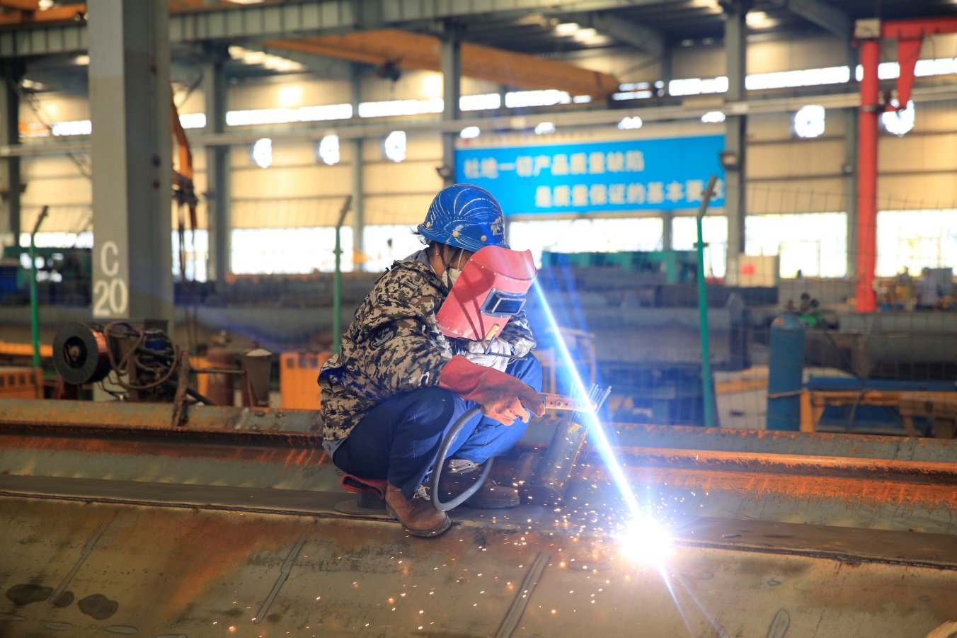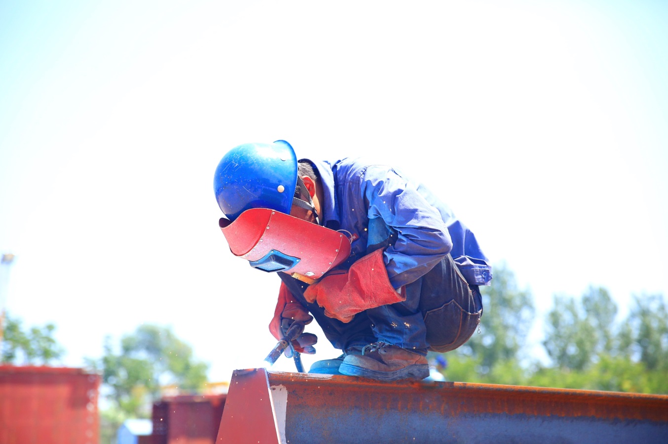 7月10日,筆者卷著熱浪走進(jìn)他們,去探索那酷暑難耐而他們卻依然堅守的秘密。下午3時許,筆者首先來到了雙梁五班,烈日當(dāng)頭,燥熱的天氣感覺快要讓人窒息,可是過來一看,仍然有那么多大方人“全副武裝”奮斗在生產(chǎn)一線,有條不紊的開展著自己的工作,任滾滾熱浪任意肆虐,對他們而言卻是心靜自然涼。筆者慢慢的走近他們,發(fā)現(xiàn)他們衣服早已被汗水浸濕,汗水順著帽檐向下滴落,落在地上、落在梁盒上、落在工件上、落在水平儀上,工作的繁忙讓他們無暇拭去臉上的汗水,只有當(dāng)汗水流入眼睛無法睜開雙眼時他們才用自己的袖子輕輕的一抹,然后又全神貫注的投入到自己的工作中??吹酱藭r此景,不由的有種敬仰之情涌上心頭,筆者被他們這種頑強的意志和一絲不茍的工作態(tài)度深深的折服。